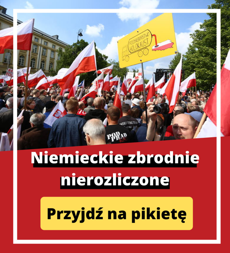 1 września w 81. rocznicę wybuchu II Wojny Światowej zwołujemy pikietę pod ambasadą Niemiec w Warszawie, podczas której będziemy domagać się od rządu Republiki Federalnej Niemiec podstawowej uczciwości i wypłaty reparacji wojennych dla Polski.