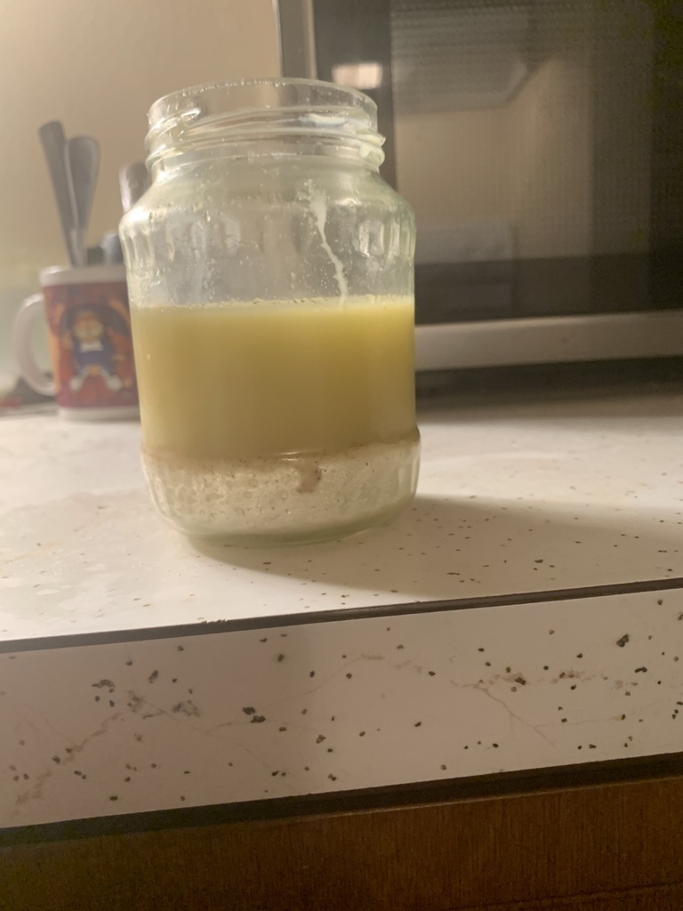 The cannabutter wasnât emulsified PERFECTLY due to the fact that I had milk solids still left. Not that much of an issue tho. Once the butter became hard to touch the milk separated to the bottom while the oils rose to the top. I poked a hole at the top of the fat and just tipped the jar upside drown draining out all the leftover milk and water. 1 and a half sticks of cannabutter left made from about 4 grams of weed in total