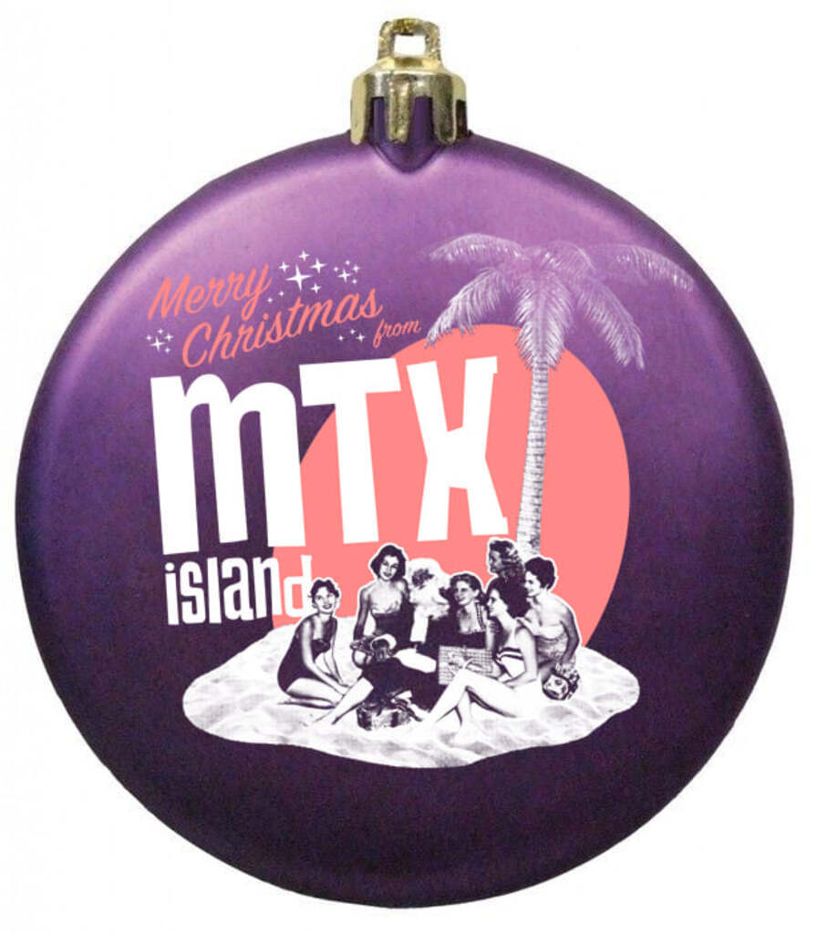 "What happens when your manufacturer sends you a frantic email about black ornaments being held up in Hong Kong? You roll with it and change the order to purple. And it looks good! MTX Island ornaments, now in purple. Aloha!"