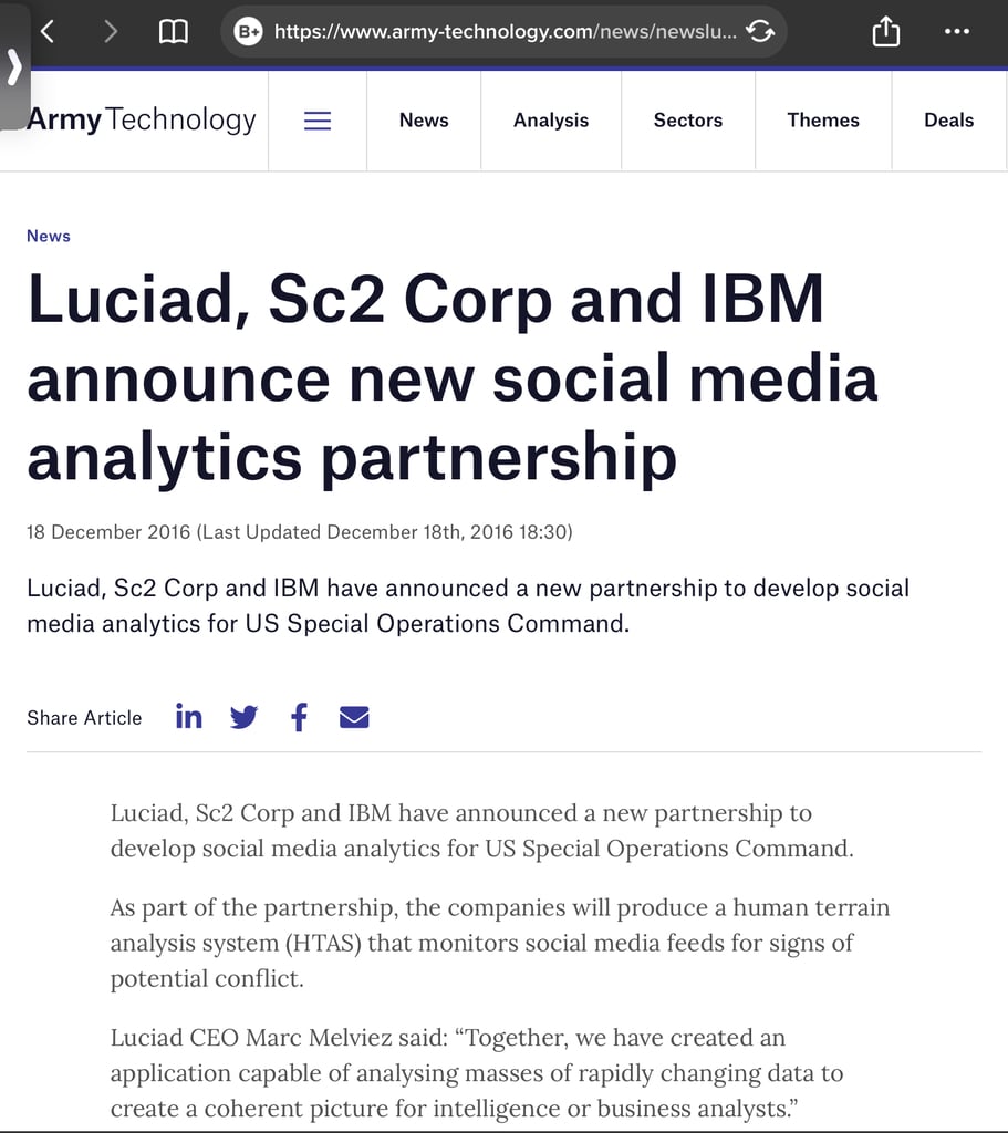 https://www.army-technology.com/news/newsluciad-sc2-corp-and-ibm-announce-new-social-media-analytics-partnership-5700211