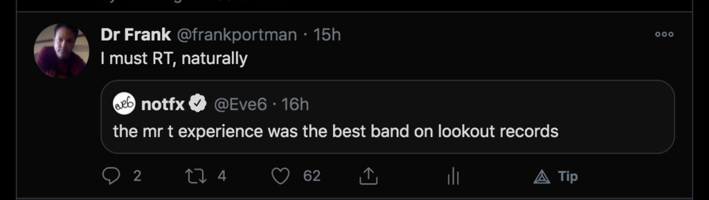 The guy from the band Eve 6 has been posting lots of provocative music takes on twitter recently, including this. (And of course, I could not but RT.) Lots of anger, and even a bit of support, ensued. Thanks.