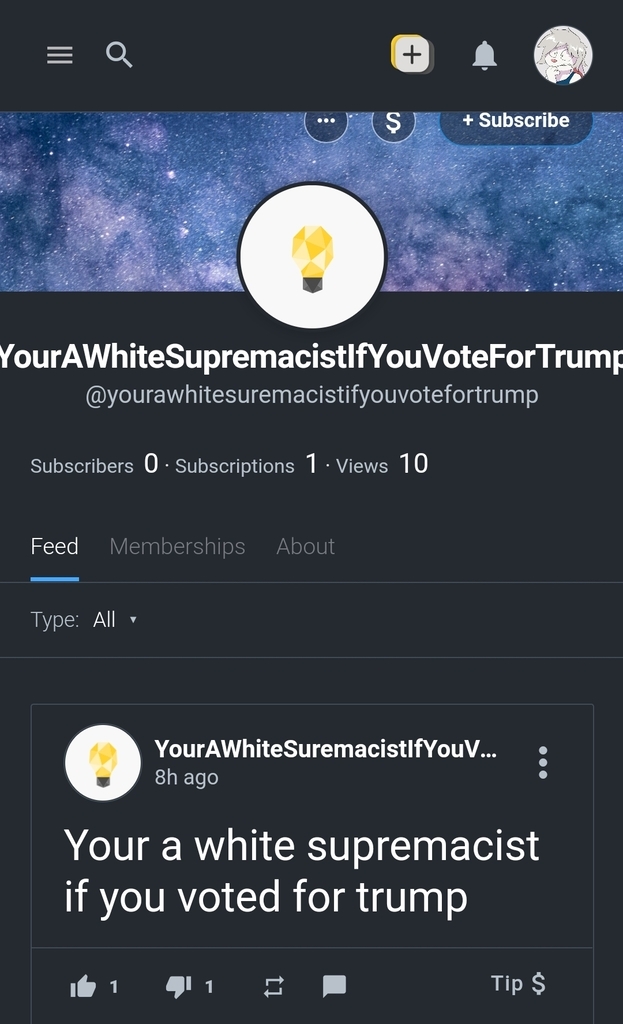 Saw this little gem accosting one of my commenters of being a white supremacist. And by the looks their page. Everyone who voted Trump too. Charming.