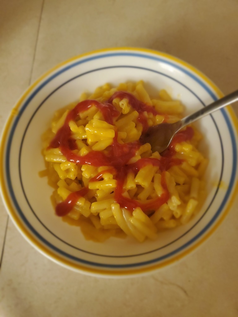 Macaroni and cheese with some ketchup on top. Anyone else do this? 😋