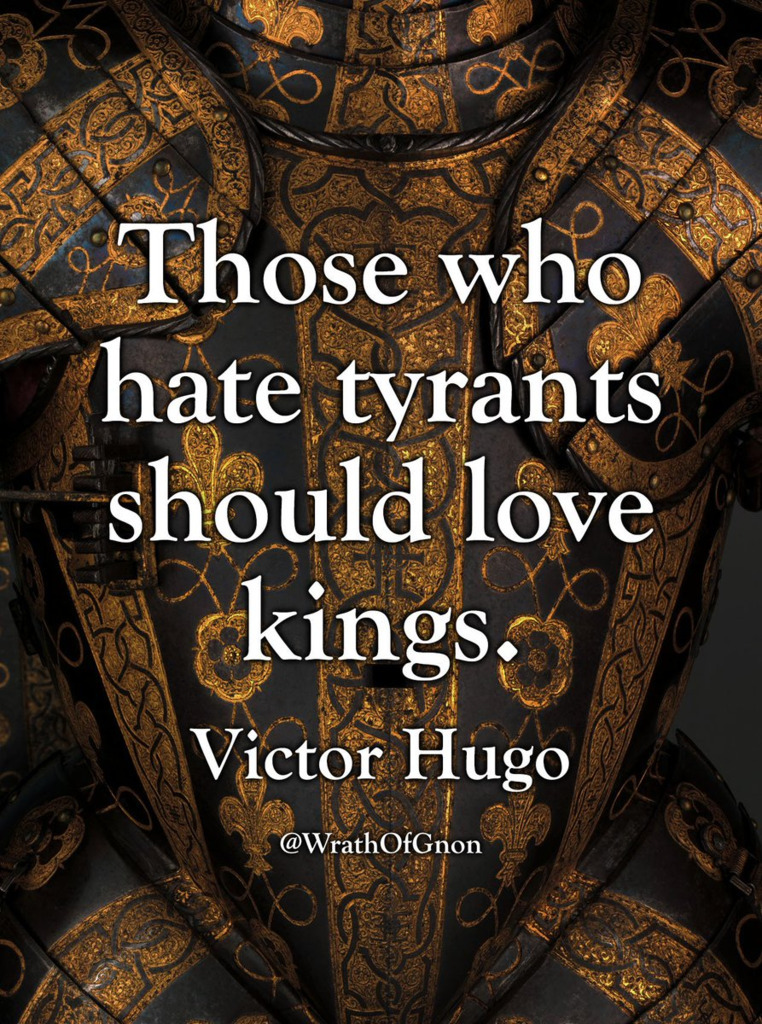"Those who hate tyrants should love kings." -Victor Hugo