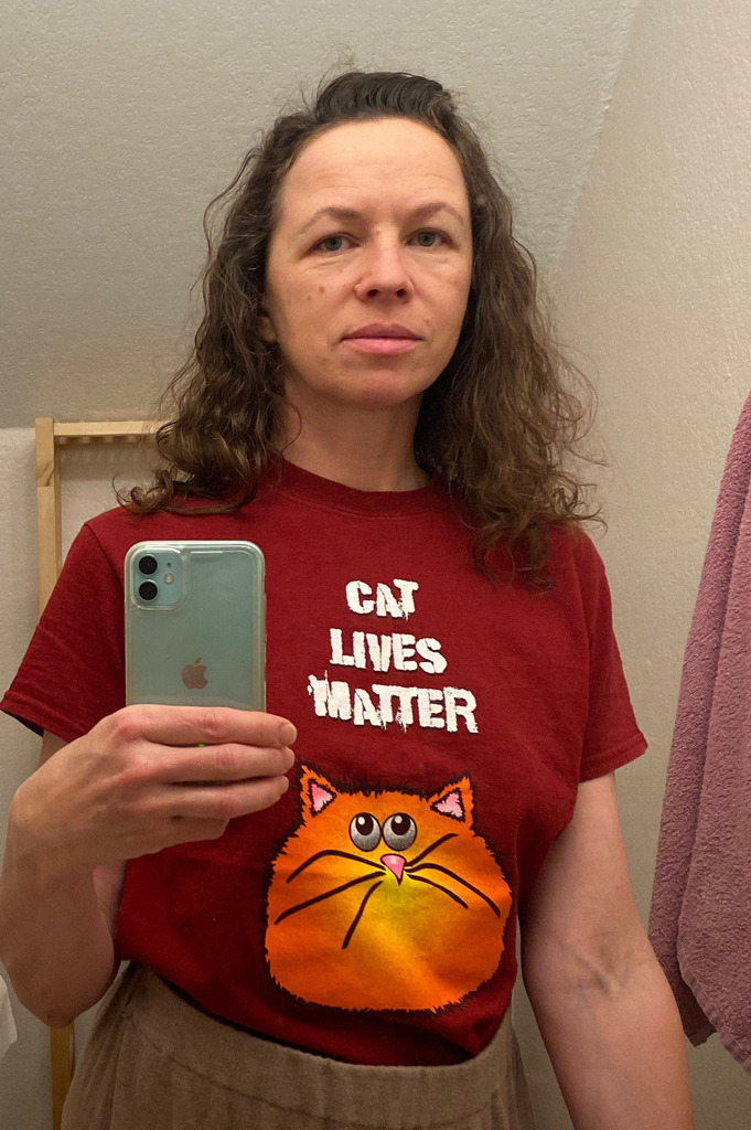 Купила эту футболку почти четыре года назад в большом кошачьем приюте.