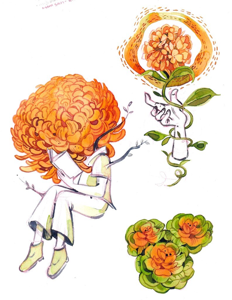 Finished a sketchbook page in between doing chores and shoveling snow. Dreaming about flowers. I did these paint doodles with Dr. Ph Martin's liquid watercolors: olive green and amber yellow.