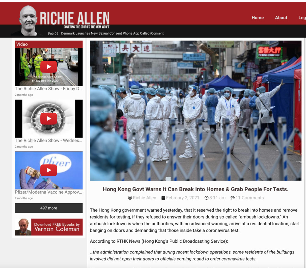 Hong Kong Govt Warns It Can Break Into Homes & Grab People For Tests. "The Hong Kong government warned yesterday, that it reserved the right to break into homes and remove residents for testing, if they refused to answer their doors during so-called “ambush lockdowns.” An ambush...See more