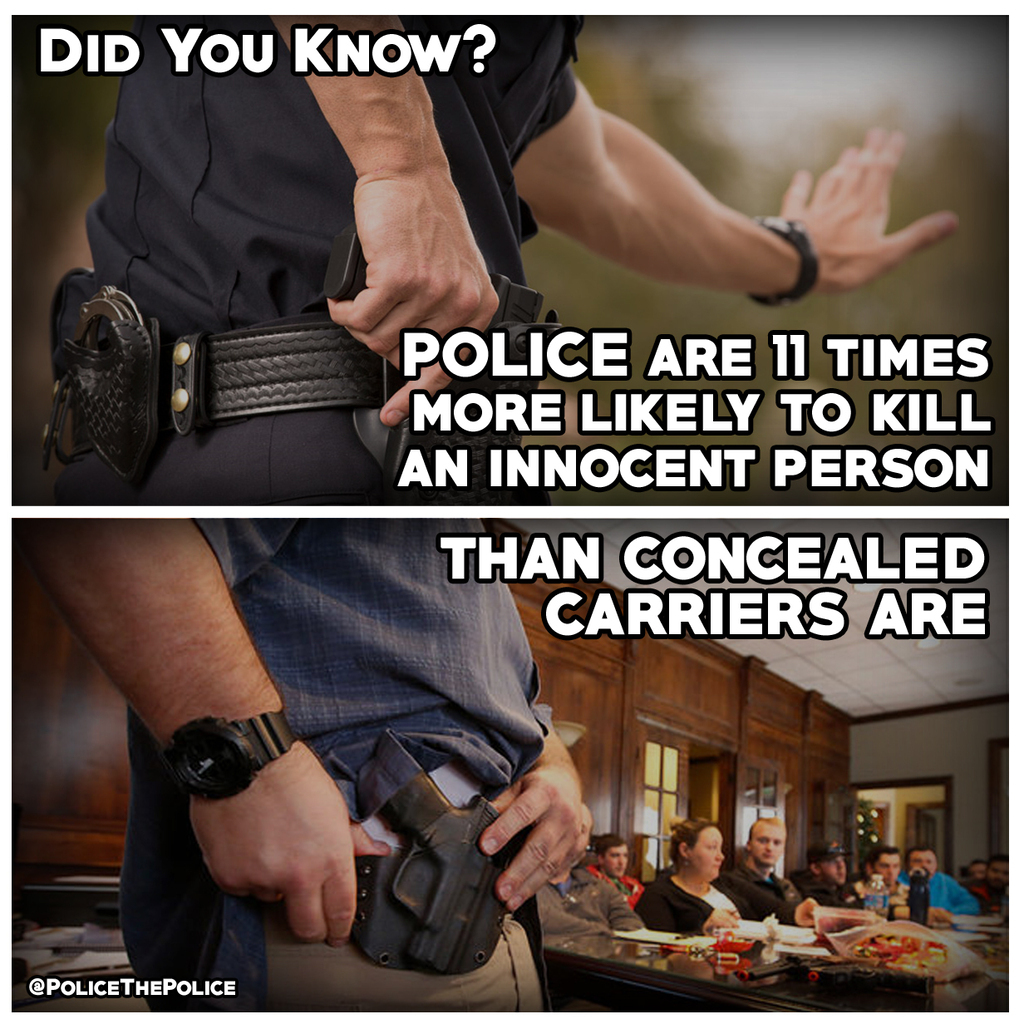 ... dangerous than a civilian carrying a firearm. Source: https://thefreethoughtproject.com/study-shows-concealed-carry-permit-holders-break-laws-far-less-than-cops/ #PoliceThePolice #PTP.