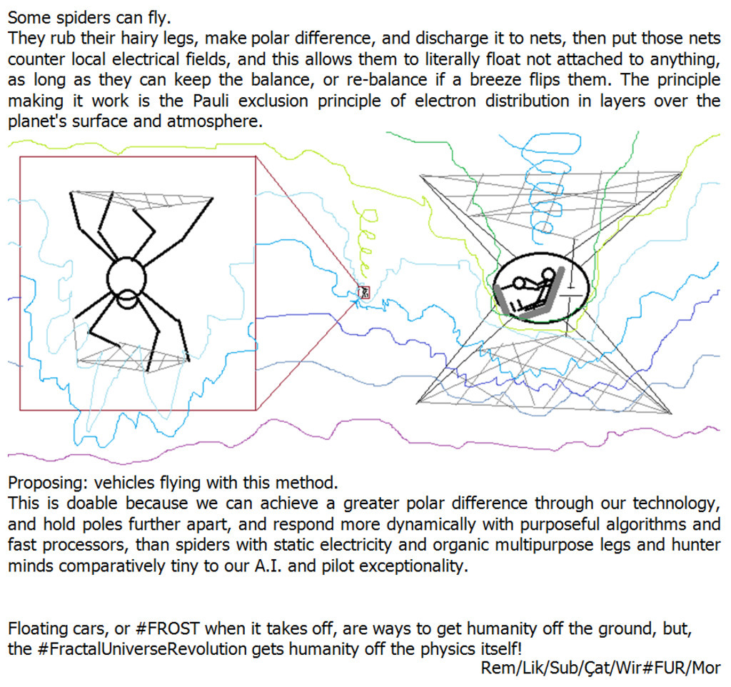 Some spiders can fly. They rub their hairy legs, make polar difference, and discharge it to nets, then put those nets counter local electrical fields, and this allows them to literally float not attached to anything, as long as they can keep the balance, or re-balance if a breeze...See more