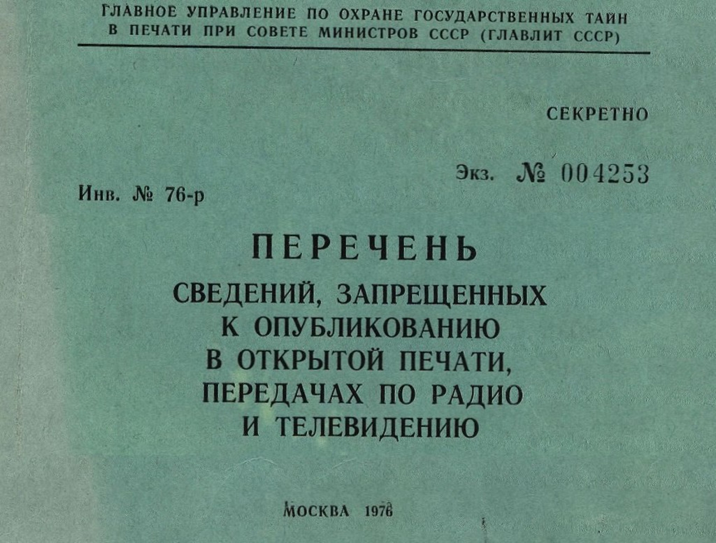 «Перечень сведений, запрещенных к опубликованию в открытой печати, передачах по радио и телевидению», 1976 год.