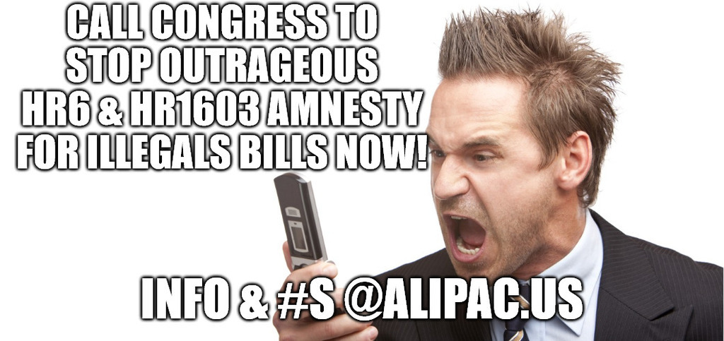 Call Congress To Stop Outrageous HR6 & HR1603 Amnesty for illegals Bills Now before they vote! https://www.alipac.us/f8/call-congress-stop-hr6-hr1603-amnesty-bills-now-383300/