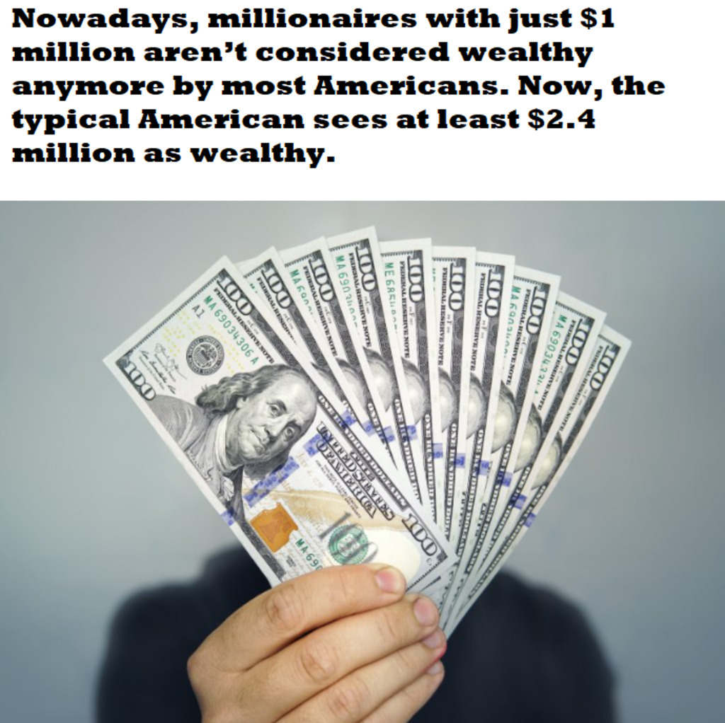 ...ered wealthy anymore by most Americans. Now, the typical American sees at least $2.4 million as wealthy..