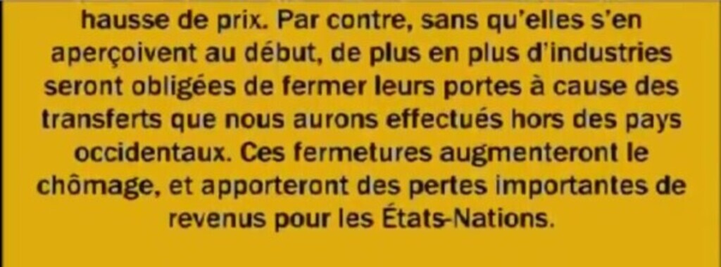 Par contre, sans qu'elles s'en aperçoivent au début, de plus en plus d'industries seront obligées de fermer leurs portes à cause des transferts que nous aurons effectués...See more