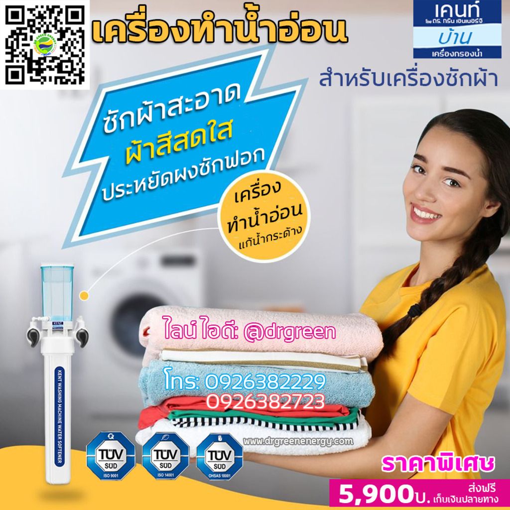 เครื่องทำน้ำอ่อน แก้ปัญหาน้ำกระด้าง สำหรับเครื่องซักผ้า Dr. Green Energy ราคาพิเศษ 5900บ. ส่งฟรี เก็บเงินปลายทาง 📱แอดไลน์ line id: @drgreen ( https://lin.ee/0c72gku ) ☎โทร: 0926382229 , 0926382723
