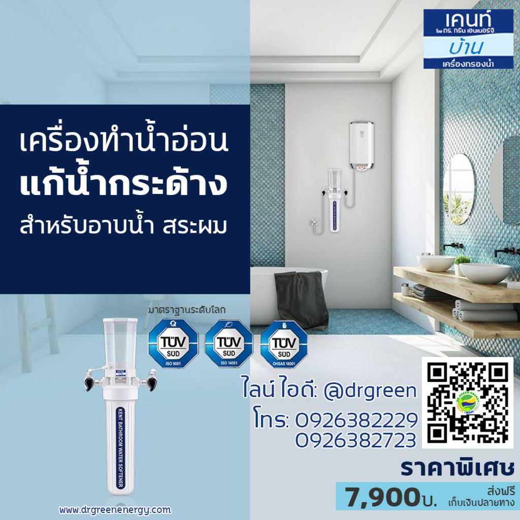 เครื่องทำน้ำอ่อน แก้ปัญหาน้ำกระด้าง สำหรับอาบน้ำ (Water Softener) Dr. Green Energy