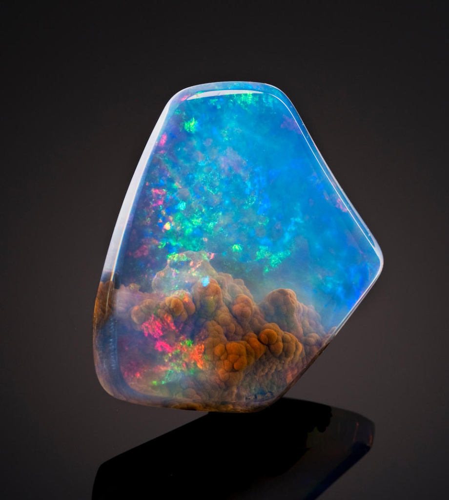 Kamień o szklistym perłowym polysku i tęczowych barwach. Nie ma struktury krystalicznej. Opal unikatowy i jeden z najdroższych kamieni na świecie uważany jest za niezwykle amulet...See more