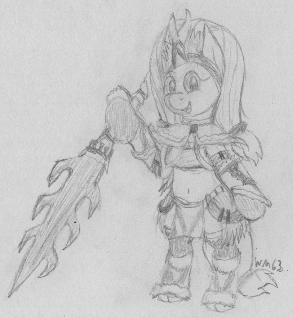 Another request I did back in the Fluttershy thread /mlp/ a while ago of Fluttershy in Kirin armor, the sword was just because I thought it looked cool as I looked at the references I used. I also don't know anything about Monster Hunter other than surface level info from a friend in high school who was obssessed with the franchise, she always one of the games for the 3DS.
