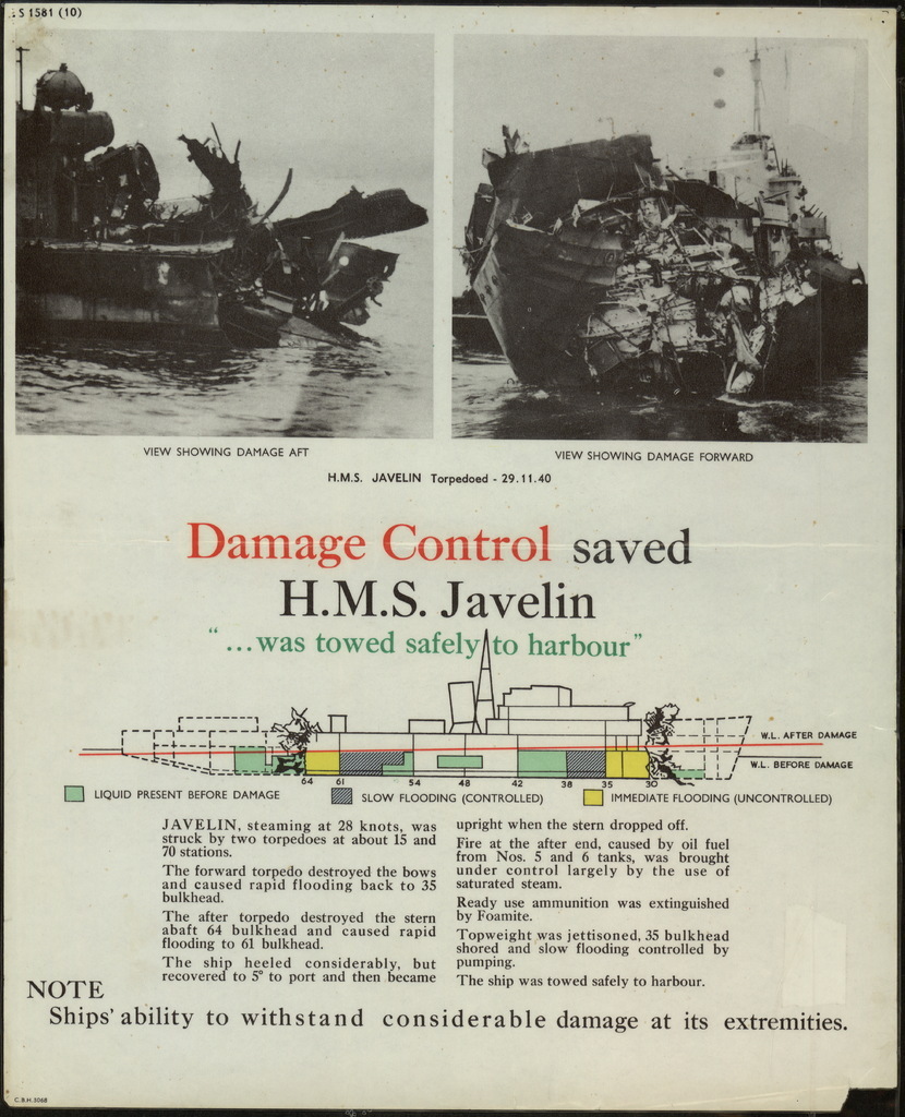 a poster produced by the royal navy, highlighting the success of javelin's crew in preventing her loss after night action against karl galster, hans lody, and erich steinbrink, in which torpedoes, likely fired by steinbrink, hit javelin both bow and stern. this engagement...See more