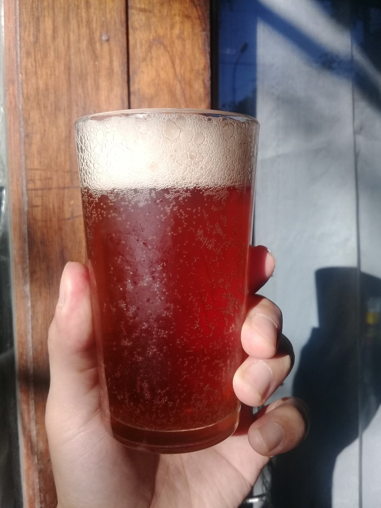 Foto de la cerveza con adición de cerezas y miel que hice en verano, la verdad estaba muy rica, frutada de buen porte una buena carbonatación - 10% Alc. Empecé a incursionar en el mundo de la cerveza en octubre del año pasado. Lo entretenido es que empecé por mi cuenta sin cursos de por medio.