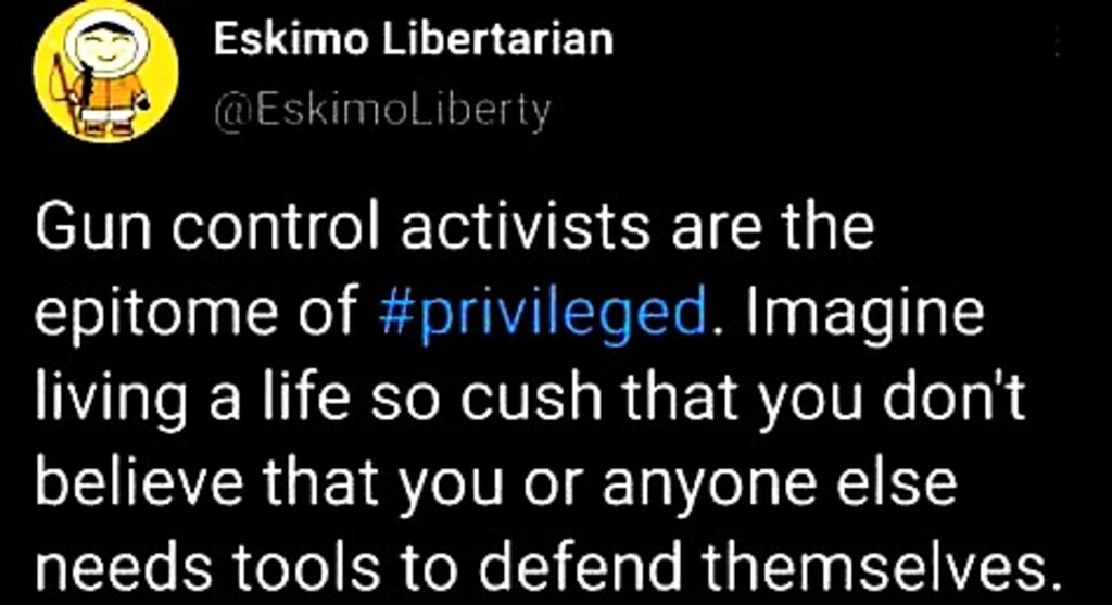 Or so ignorantly blind to think view the world as perfectly safe and civilized that guns are unneeded. Not to mention the deep rooted fear of your fellow humans that you can’t trust a person to have a gun believing they’ll randomly shoot you.