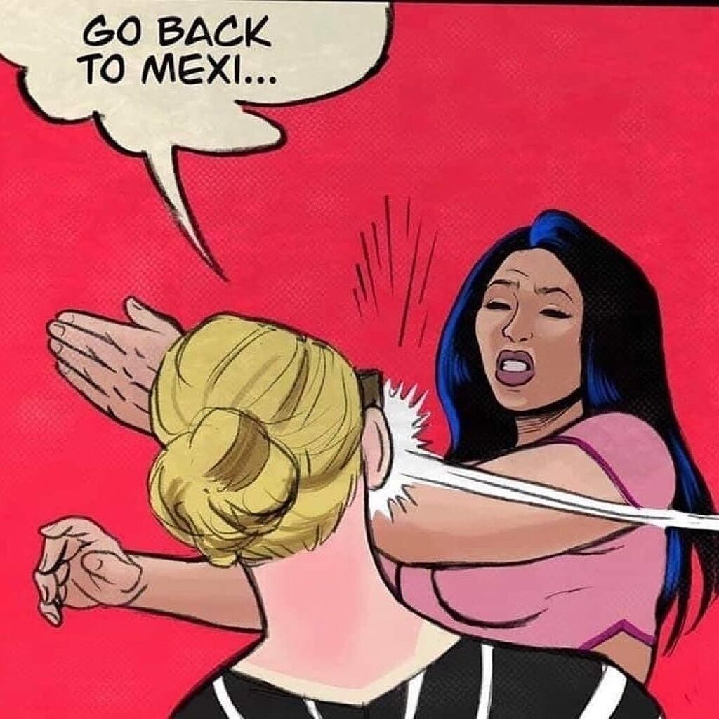 People are fighting back against the "Karens" of the world. So someone made this artwork of a Karen being slapped, inspired by the incident at a Phoenix gas station when a Karen harassed a Native American woman, told her to go back to Mexico and then was slapped accordingly. (swipe for the video) Artwork by chief_mota_ via redfishstream