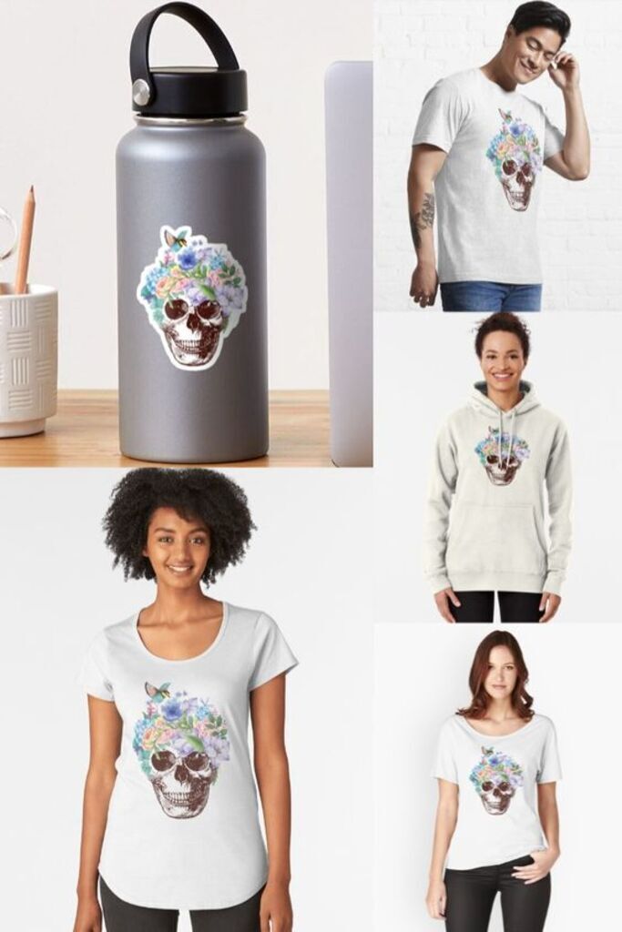 Grunge skull with vintage flowers and a cute bird. Be death inspiring but also cute in the same time. https://www.redbubble.com/shop/ap/78162714?asc=u