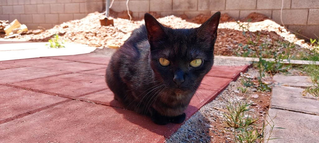... not more than 20ft away from the door and also the door needs to be open and one of her humans in line of sight or instant panik.