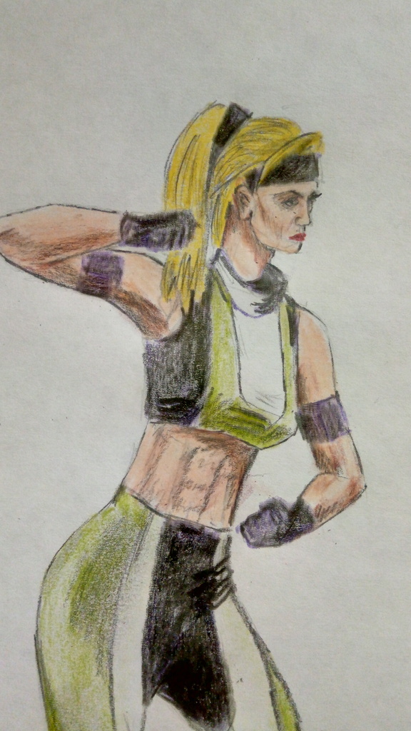 Original colored pencils drawing. Sonya blade classic edition