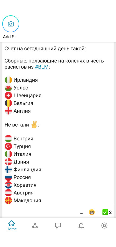 ... что интересует болельщиков в начавшемся чемпионате Европы по футболу, кто из сборных вставал на колени, а кто нет..