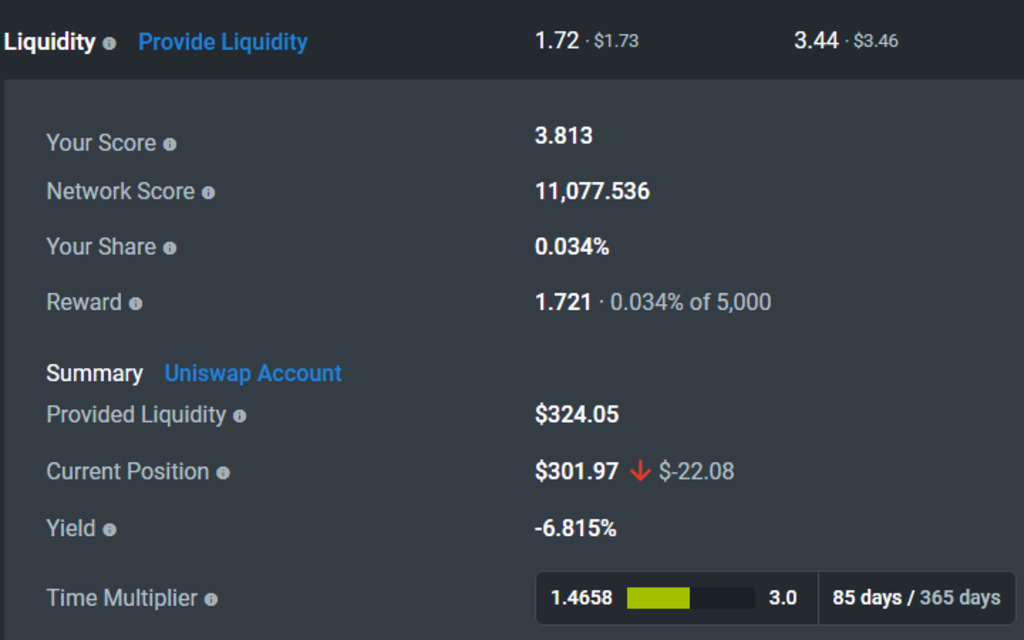ยังไงก็เอาไปคำนวนกันเอาเองนะ ว่าคุ้มของตัวเองมั้ยที่จะลงทุน (ถ้าจะลงพูลเหมือนเรา) // แต่มันยังมีค่าธรรมเนียมที่เราจะได้ uniswap อีกนะ แต่เรายังดูไม่เป็นว่าดูตรงไหน เดี๋ยวถ้าหาเจอจะเอามาบอก