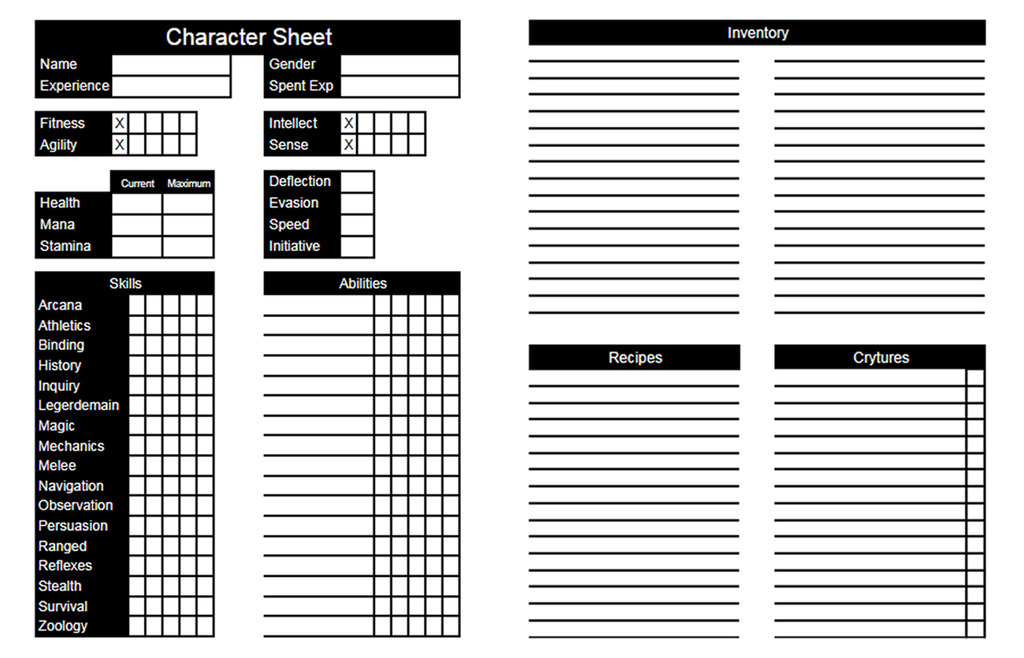 Crytures Character Sheet