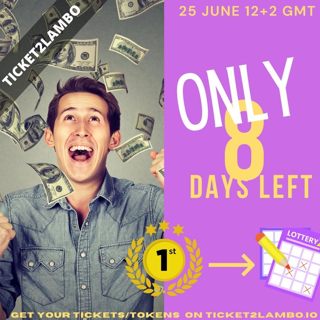 8 day until the first (test) draw. Prizes to be won!!! #ethereum #T2L get you tickets now at https://www.ticket2lambo.io