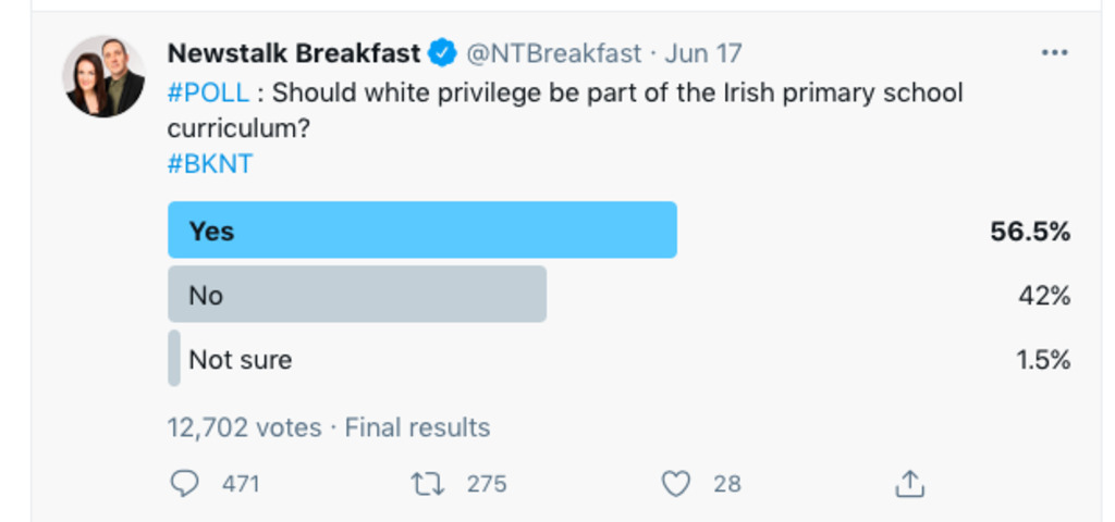 ...nd we were never involved in the African slave trade but apparently White privilege should be taught to kids in Irish schools. Make sure you home school your kids..