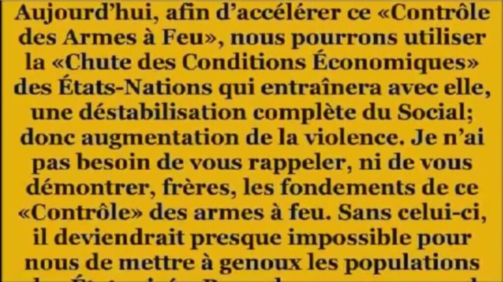 Aujourd'hui, afin d'accélérer ce «Contrôle des Armes à Feu», nous pourrons utiliser la «Chute des Conditions Économiques» des État-Nations qui entraînera avec elle,...See more