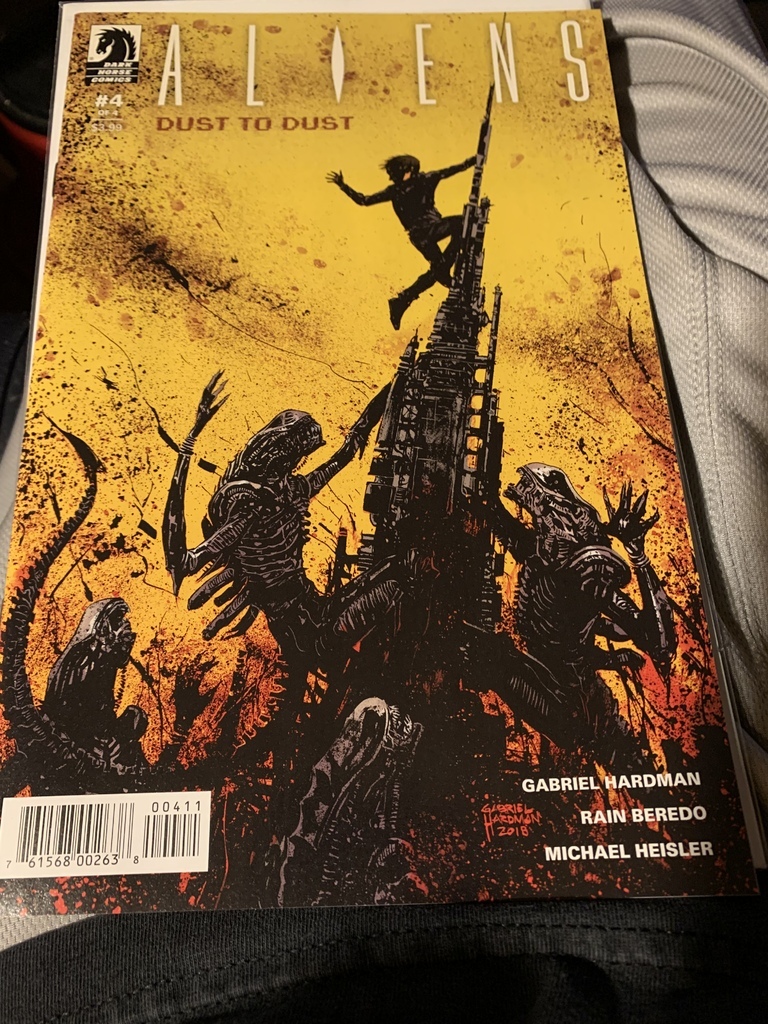 Dark Horse Comics Aliens Dust to Dust #4 of #4. January 2019. With only two survivors and half a synthetic escaping the colony has become top priority. One woman and a boy must scale the base several floors up with an entire colony of Zenomorphs barring down on them. With barely...See more