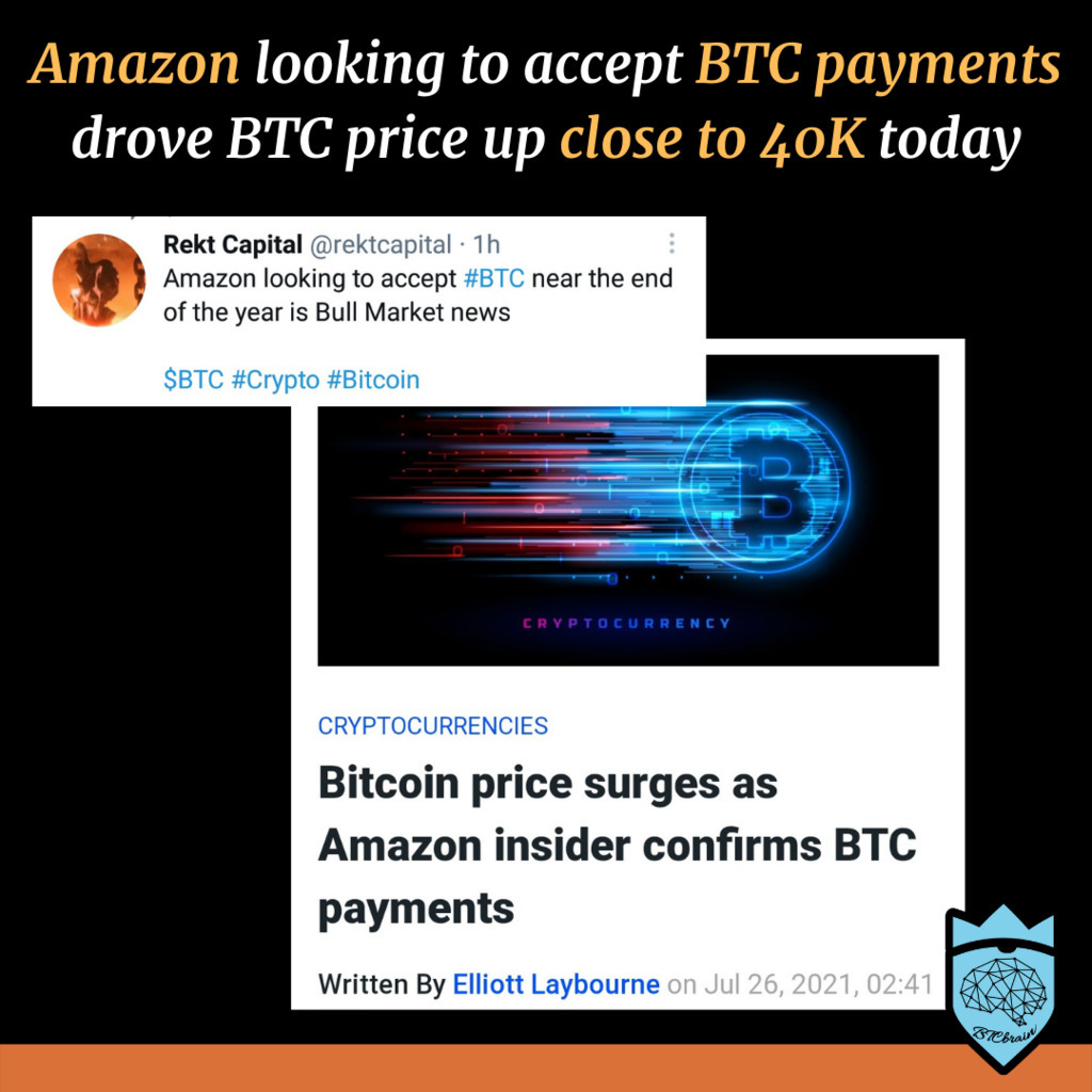 Amazon looking to accept BTC payments drove BTC price up close to 40K today!