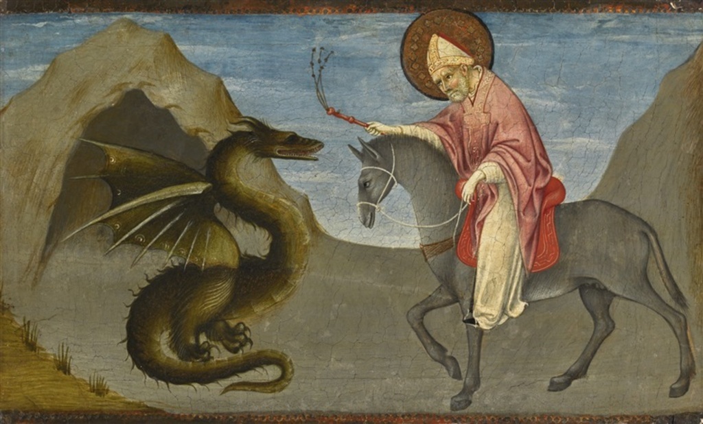 Saint Donatus chastising the dragon - Sano di Pietro (Italian, 1405–1481) #romancalendar #art #minds