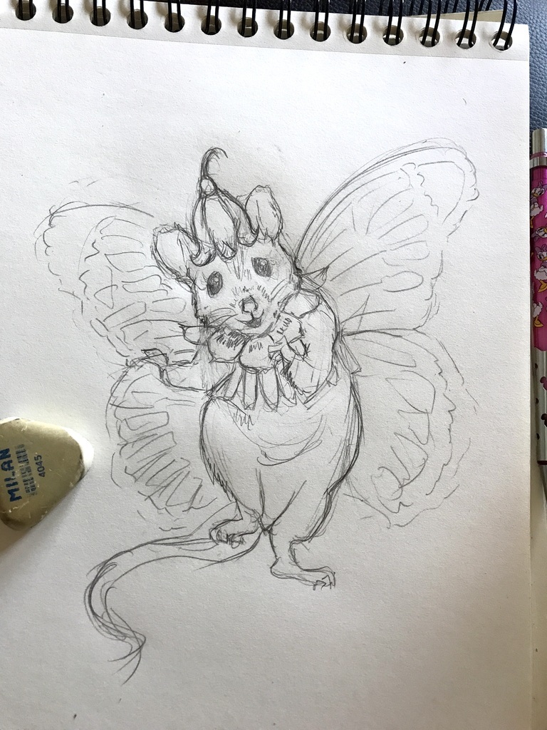 First time drawing after the summer! I’m doing a sketch for the #fallfairies challenge by @theparlorwitch I’m taking a different approach this year! I’m thinking about making a background or not and if I should paint with watercolor and ink or just pencil