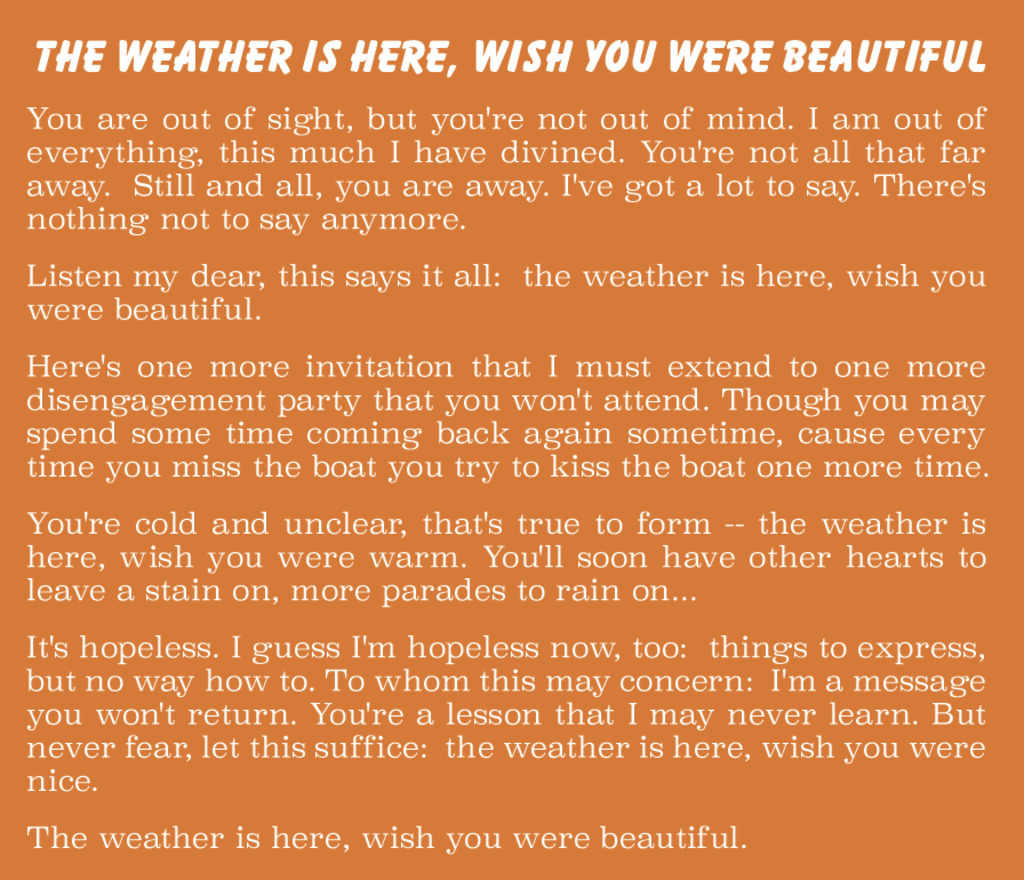 Speaking of RISASAY: Chris Appelgren has been working on the re-construction the Revenge... artwork for the revamped Sounds Rad re-issue, and I was struck anew by how well these lyrics can be construed as complete sentences. I'm not sure it was a thing worth doing necessarily, but I believe it is at least a bit unusual. If nothing else it makes all that text easier to fit on a page.