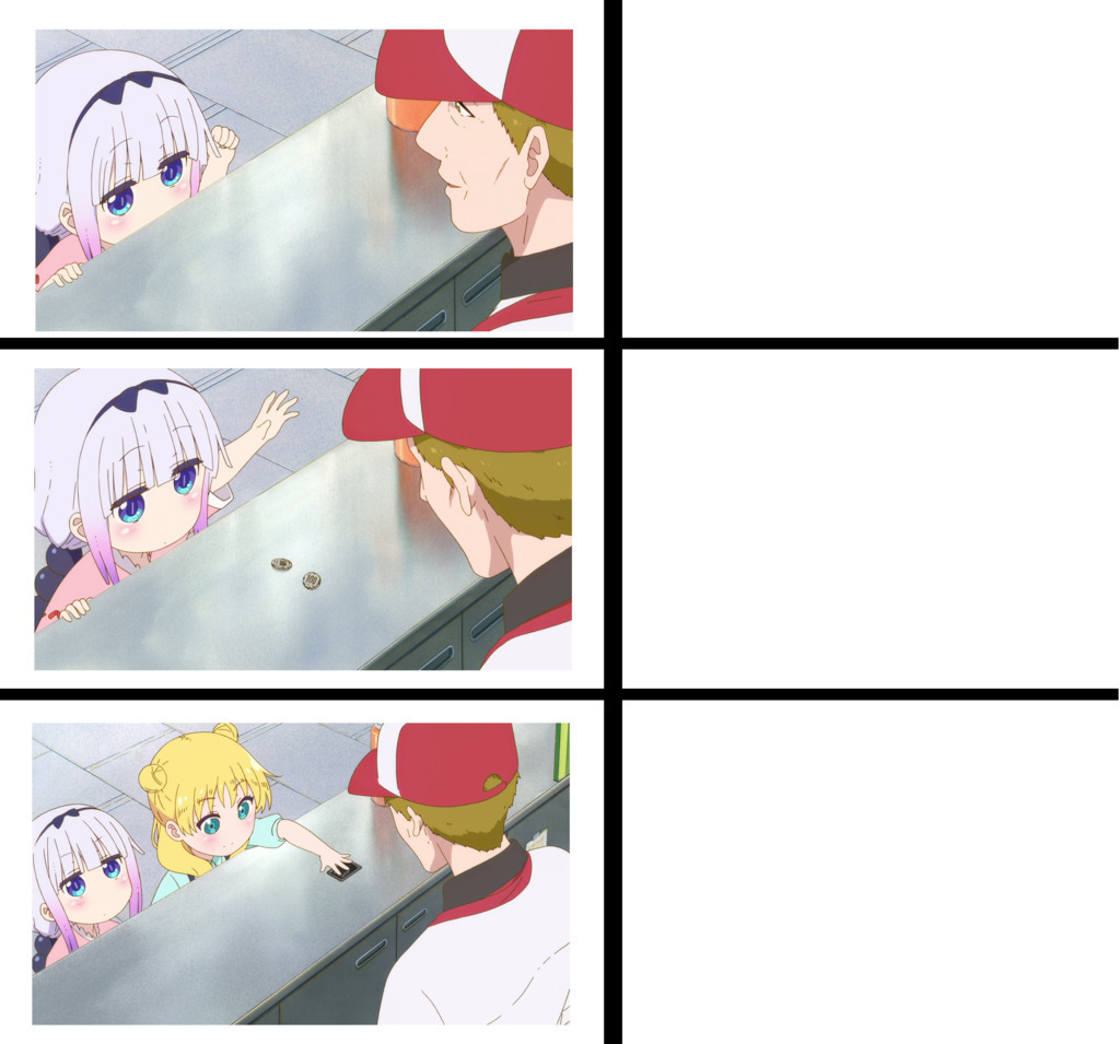 I made a template for people to use with Kanna trying to buy hot dogs in the new episode of Dragon Maid