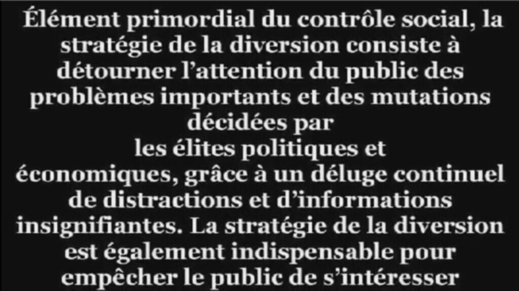 page précédente https://www.minds.com/newsfeed/1278477436207501329 Source : https://odysee.com/@6aircyan:7/LE-PLAN-SECRET-DES-ILLUMINATI-EXPOSE-(COMPLET):2?r=8r1ytyFxQAVeLuBYGFuZHhGpGVWc7Lzz&t=2972 Élément primordial du contrôle social, la stratégie de la diversion consiste à...See more