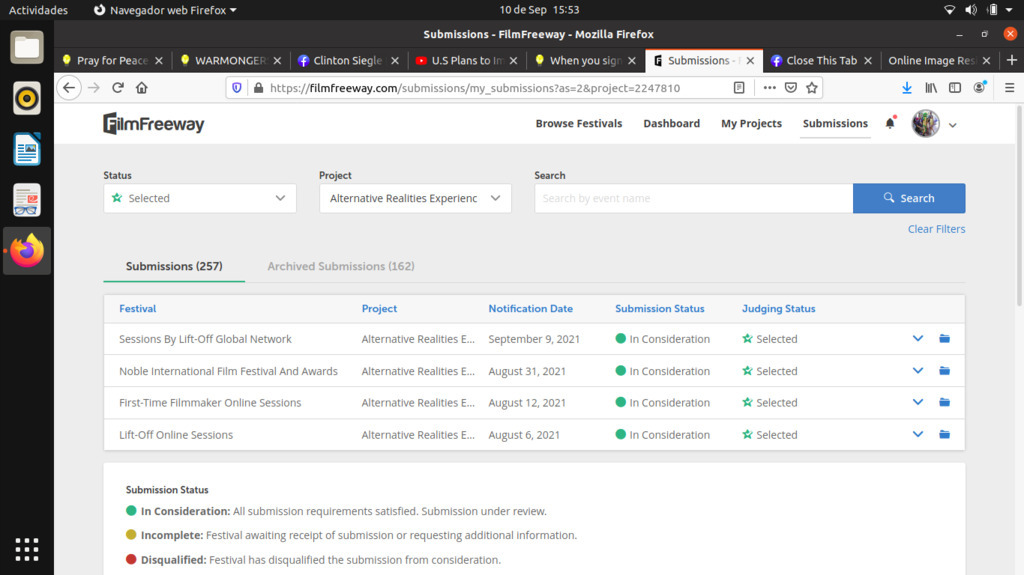 Congrats on Alternative Realities 4 times selected film festival on Lift 1, Lift Global, Noble Film Festival Lift first time film maker.