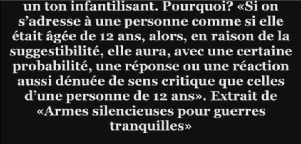 page précédente https://www.minds.com/newsfeed/1285846123390439437 Source https://odysee.com/@6aircyan:7/LE-PLAN-SECRET-DES-ILLUMINATI-EXPOSE-%28COMPLET%29:2?r=8r1ytyFxQAVeLuBYGFuZHhGpGVWc7Lzz&t=3136 Un ton infantilisant. Pourquoi ? «Si on s'adresse à une personne comme si elle...See more