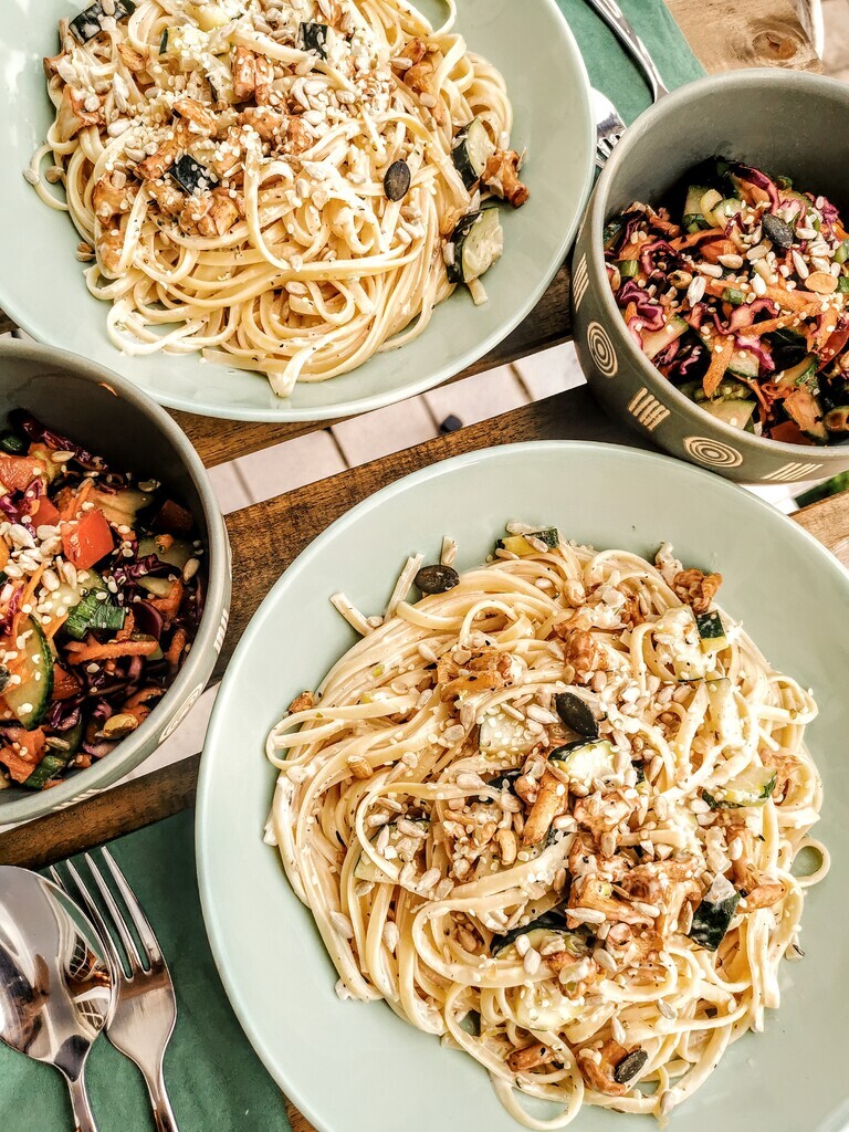Vegane Spaghetti mit Eierschwammerl-Soße