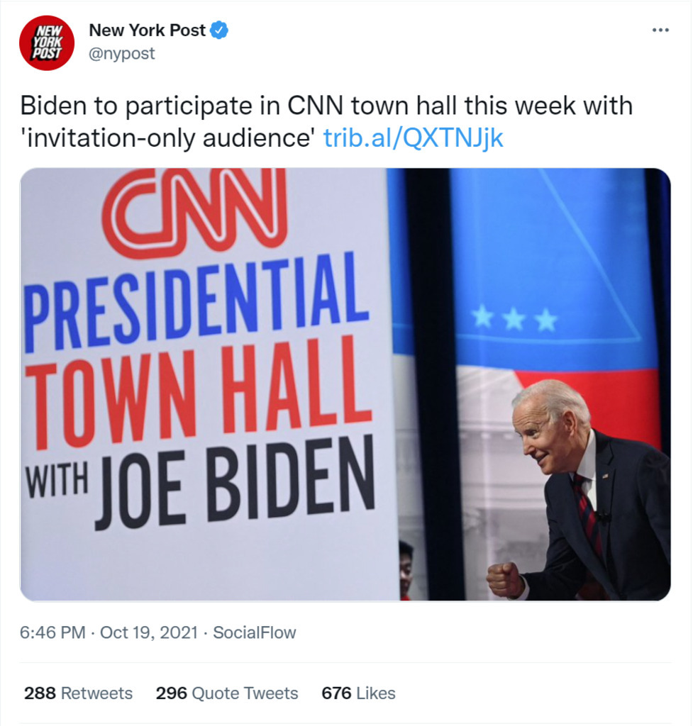 ...and-picked audience >location not yet disclosed so a town hall without the town, then. peak clown admin.