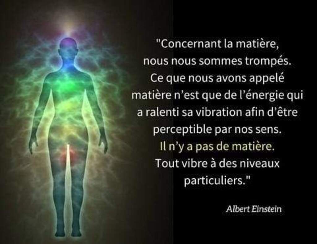" Regarding the matter, we were wrong. What we have called matter is just energy that has slowed down its vibration so that it can be perceived by our senses. there is no matter. Everything vibrates at particular levels " Albert EINSTEIN