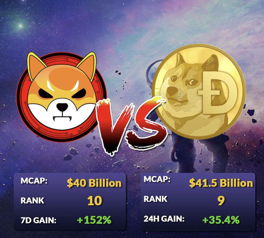 🐕 It’s a head to head race between the biggest meme dog tokens. 🚀Who do you got winning? 👉🏻Will SHIB aka “the DOGE KILLER” fullfill it’s prophecy? #shiba #dogecoin #crypto #bitcoin
