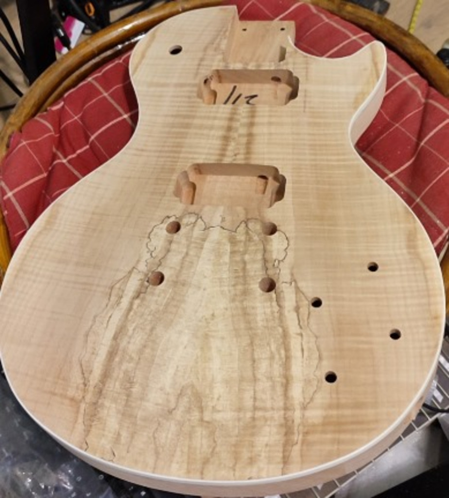 Like this things are beginning: Started to build my selfmade custom build Vintage Les Paul Singlecut. The plan (still flexible): 1.) Body: Spalted Maple with som blue ornaments. Possibly with a few rare glitter effects. 2.) Pickups: Black Niquel Artec PAF Vintage Humbucker...See more
