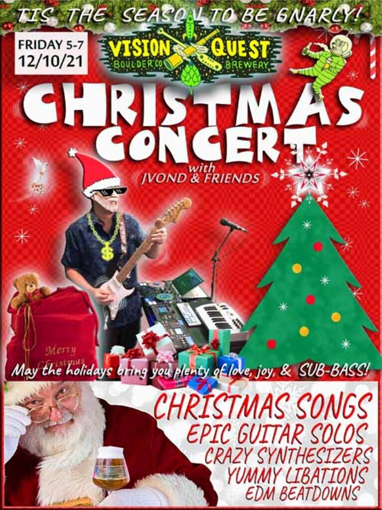 Christmas Concert TONIGHT! IN BOULDER! Please join us. Aphonix will be jamming too. Sing along and check out some of the new sounds. I'll be performing 11 holiday classics and other epic jams like you've never heard. Maybe Santa will show up. ;) 5-7 @visionquestbrew