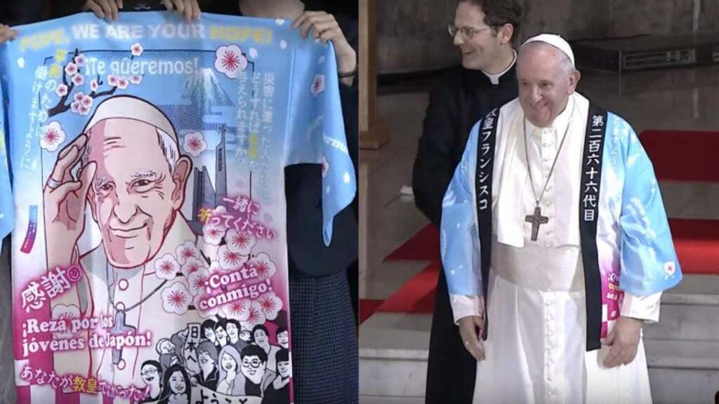 Pope Francis wore this anime coat which was gifted to him when he visited Japan.